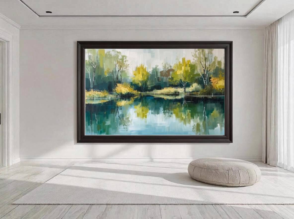 Abstraktes Seen-Panorama – Wandbild in Smaragdgrün, Blau & Gold